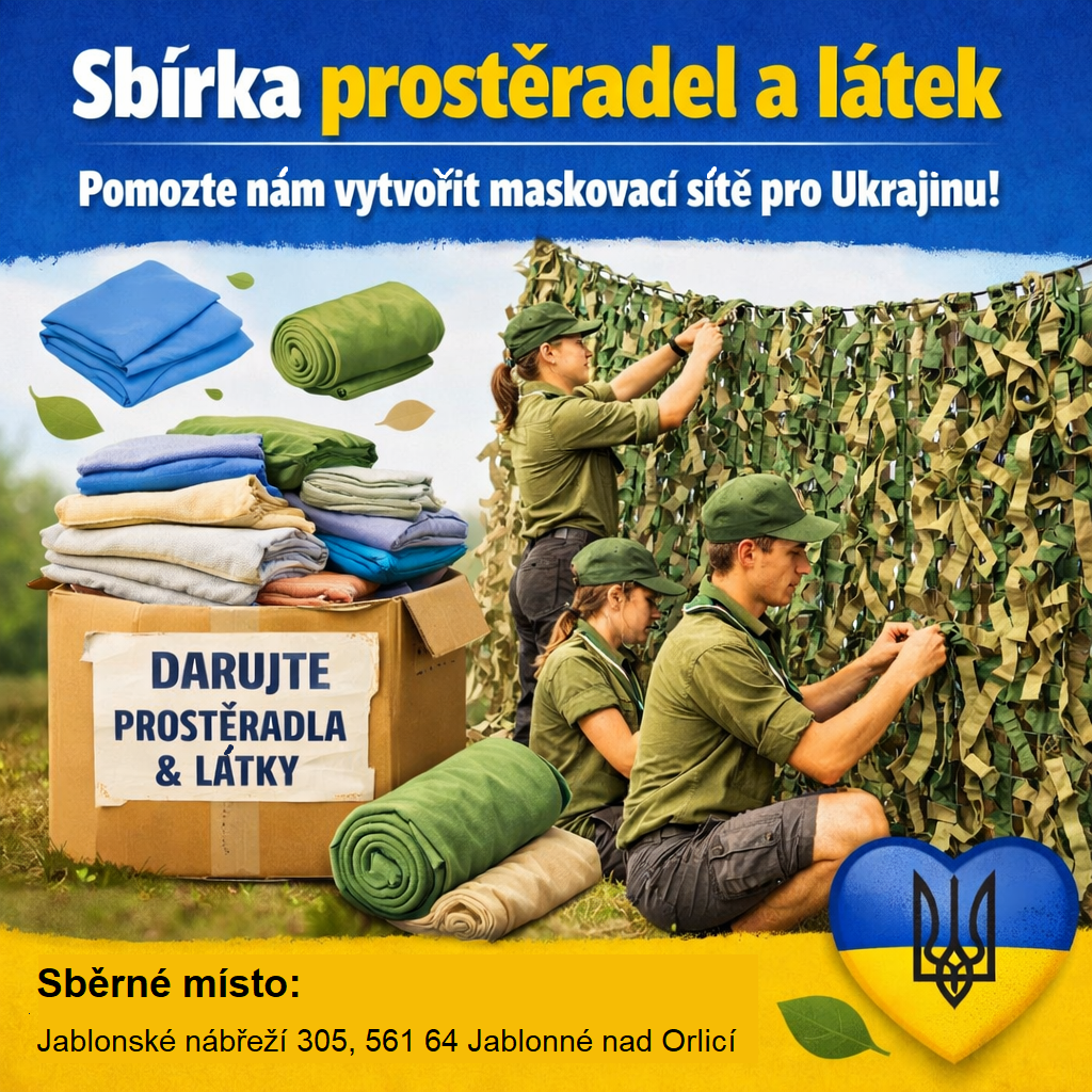 Spouštíme sbírku prostěradel a látek, ze kterých skauti vyrobí kamuflážní sítě pro Ukrajinu. Přineste čistá prostěradla či látky a pomozte tam, kde je to právě teď nejvíc potřeba. ![]()